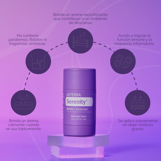 Serenity Stick es una barra aromática en formato roll-on lista para usar, creada a partir de la popular mezcla doTERRA Serenity®, ideal para acompañarte antes de dormir o en momentos de agitación emocional.